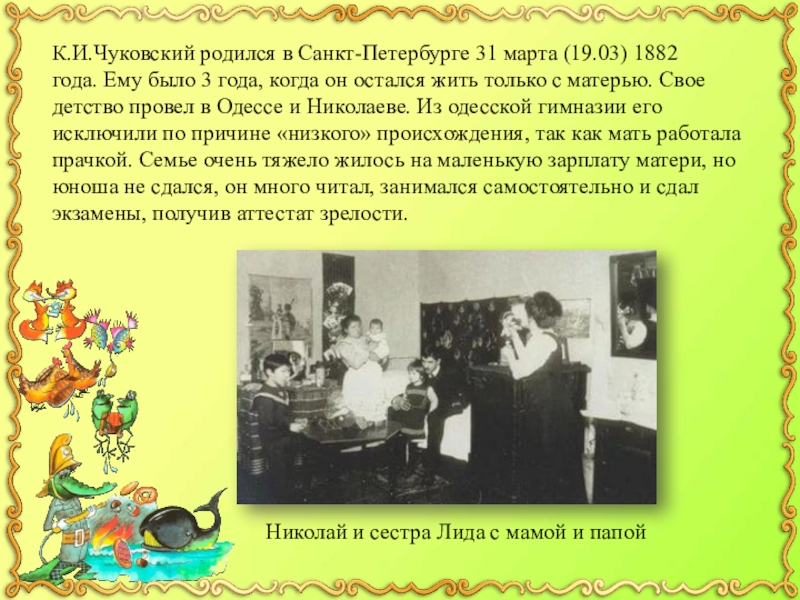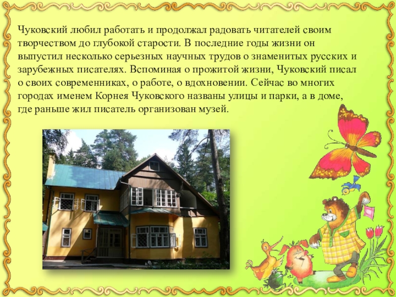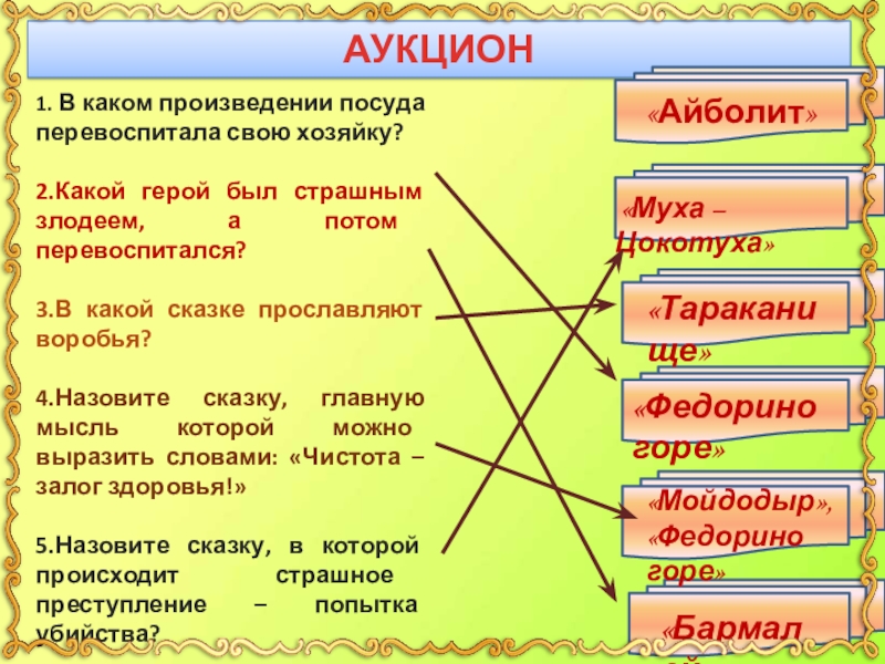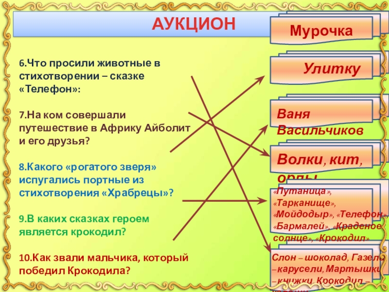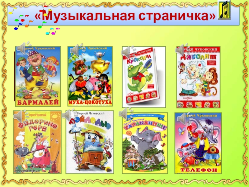 «Путаница», «Тарканище», «Мойдодыр», «Телефон», «Бармалей», «Краденое солнце», «Крокодил»