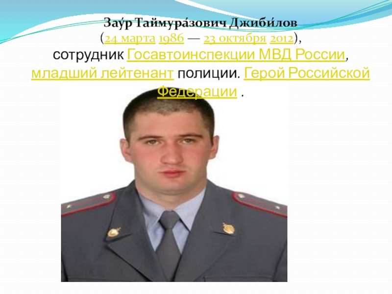 Слайд 29Зау́р Таймура́зович Джиби́лов