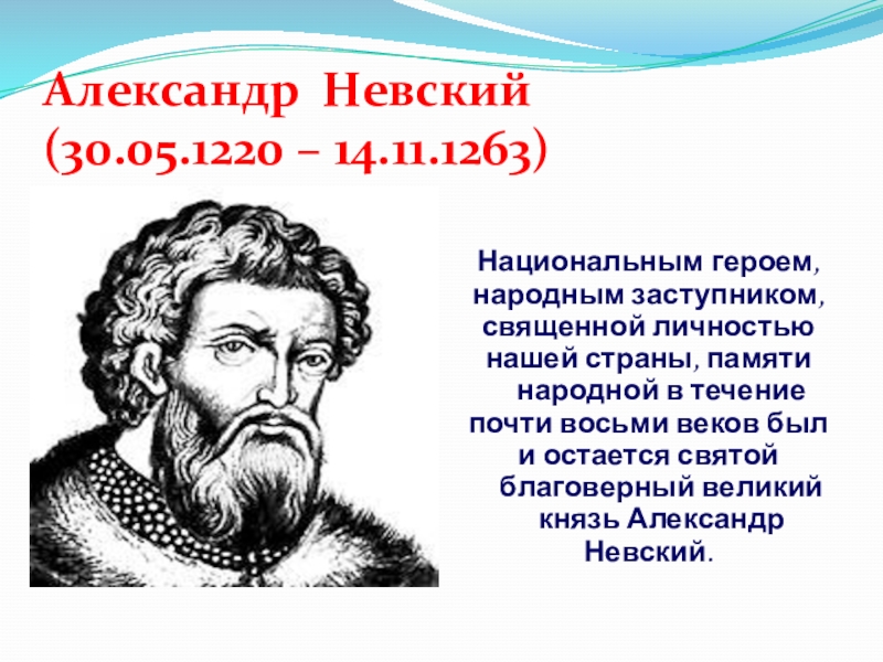 Слайд 4Александр Невский (30.05.1220 – 14.11.1263)
