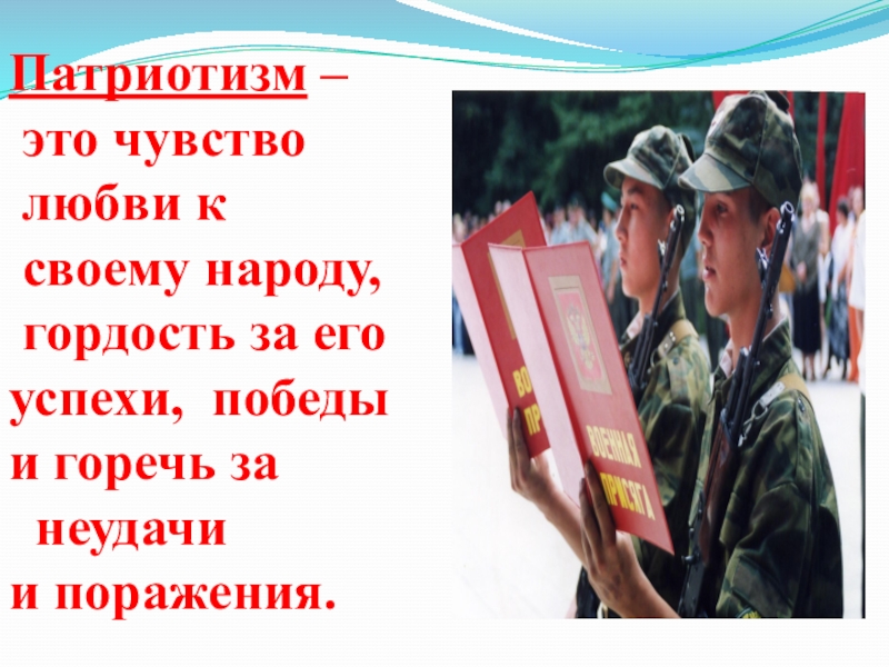 Слайд 3Патриот – человек, проникнутый патриотизмом.