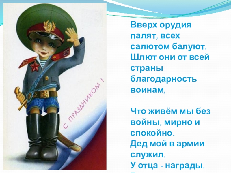Слайд 31Вверх орудия палят, всех салютом балуют.