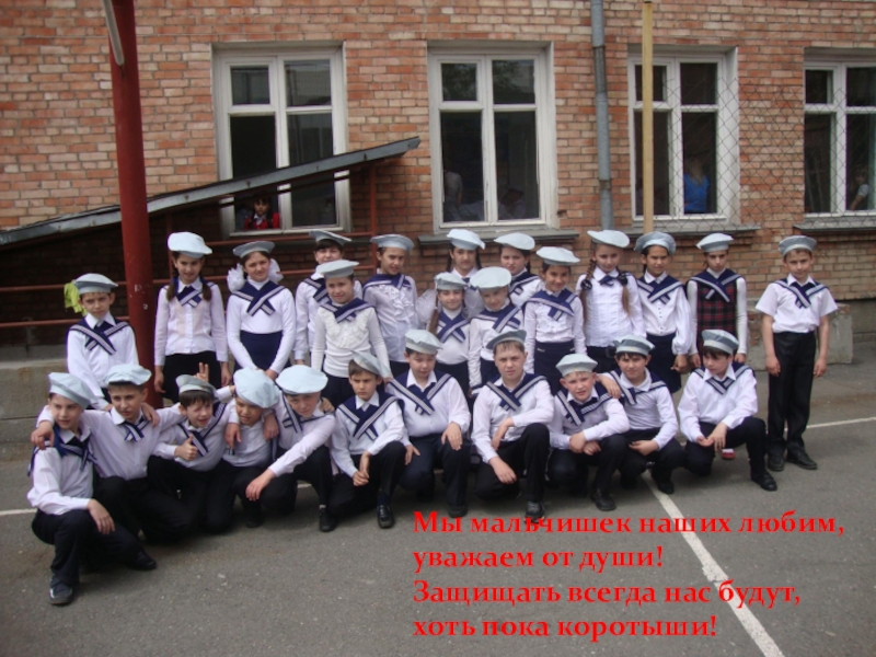 Слайд 45Мы мальчишек наших любим, уважаем от души!