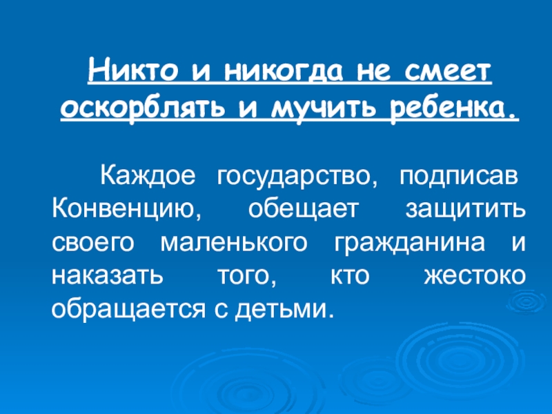 Слайд 27Никто и никогда не смеет оскорблять и мучить ребенка.