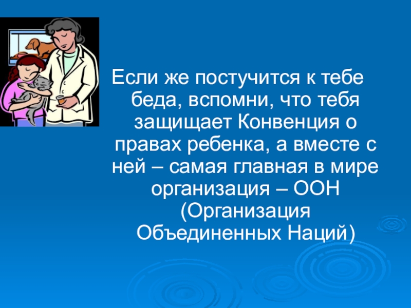 тебе беда, вспомни, что тебя защищает Конвенция о правах ребенка, а вместе с ней – самая главная в мире организация – ООН (Организация Объединенных Наций)