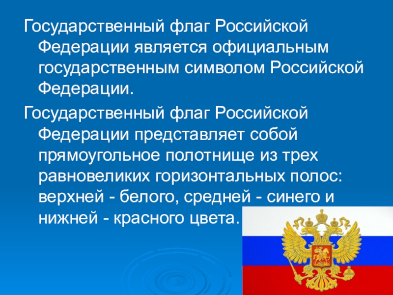 Слайд 12Государственный флаг Российской Федерации является официальным государственным символом Российской Федерации.