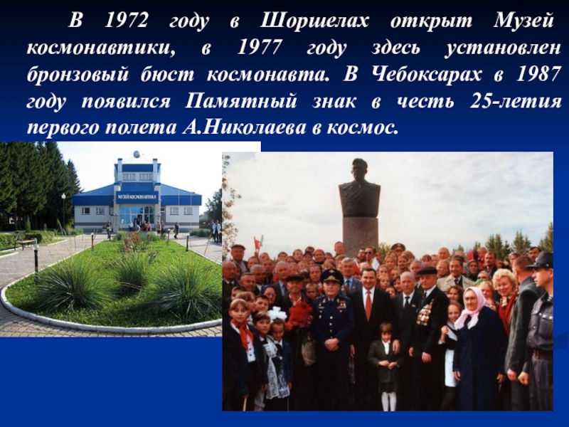 Слайд 21 В 1972 году в Шоршелах открыт Музей космонавтики, в