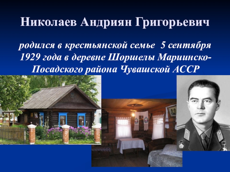 Николаев Андриян Григорьевич  родился в крестьянской семье 5 сентября 1929 года в деревне Шоршелы Мариинско-Посадского района