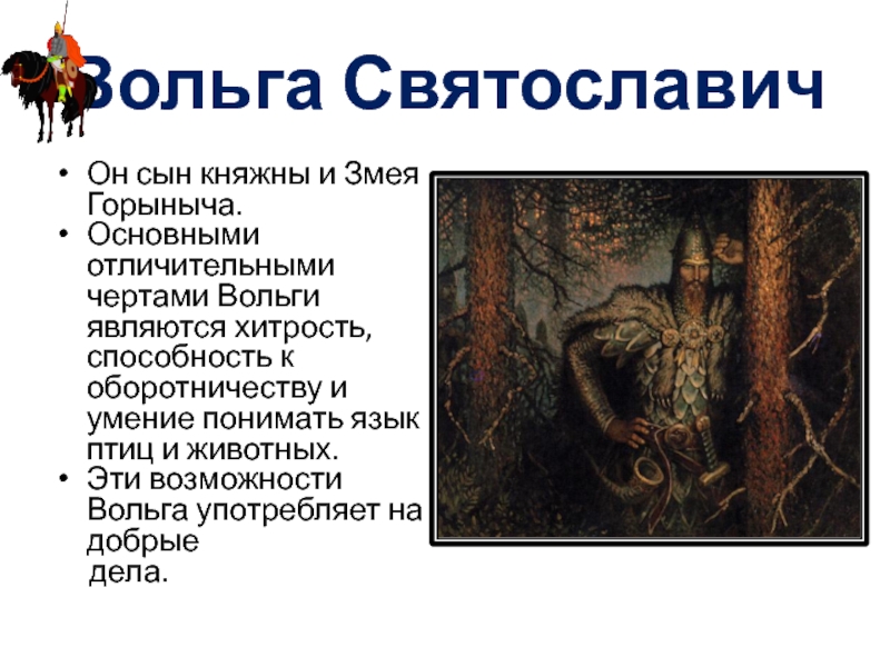 хитрость, способность к оборотничеству и умение понимать язык птиц и животных.