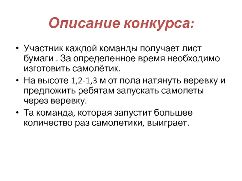 Та команда, которая запустит большее количество раз самолетики, выиграет.