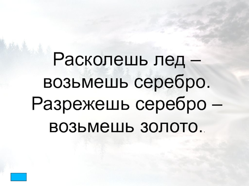 Слайд 26Расколешь лед – возьмешь серебро.