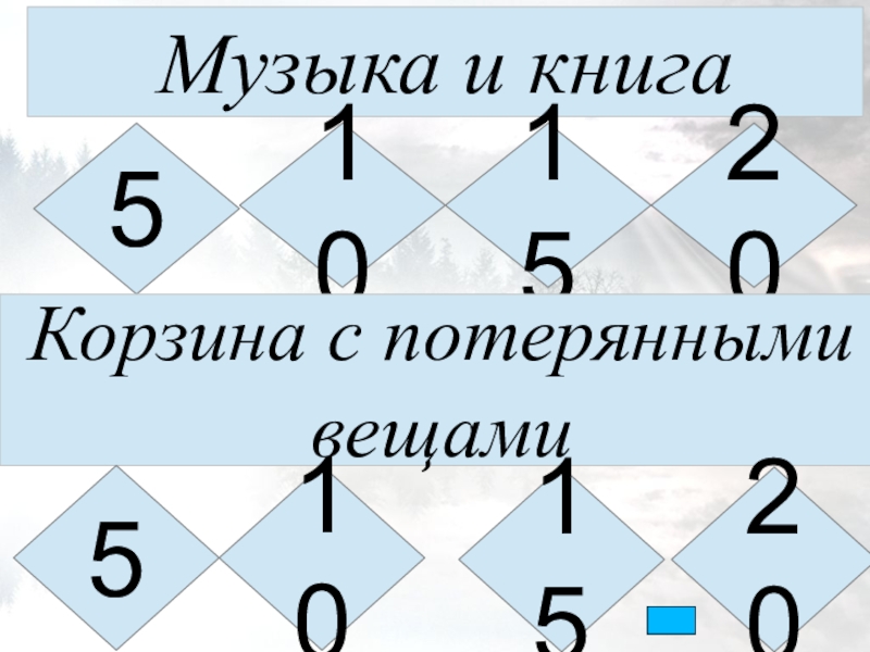 Музыка и книга5101520Корзина с потеряннымивещами5201510