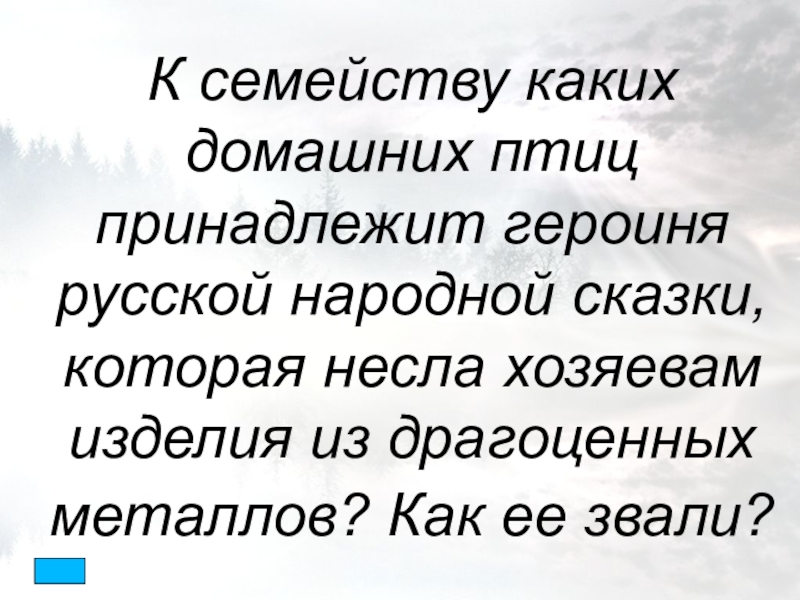 Слайд 12К семейству каких домашних птиц принадлежит героиня русской народной сказки, которая