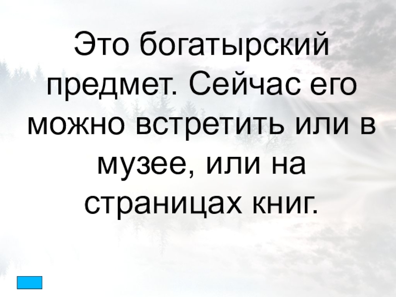 Слайд 28Это богатырский предмет. Сейчас его можно встретить или в музее, или
