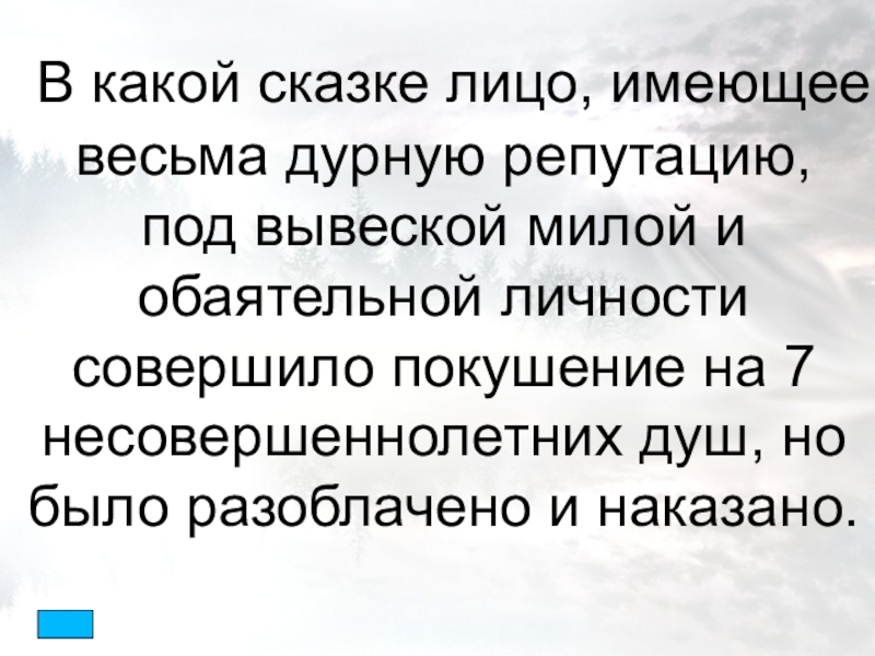 Слайд 15 В какой сказке лицо, имеющее весьма дурную репутацию,