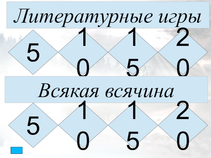 Литературные игры5101520Всякая всячина5201510