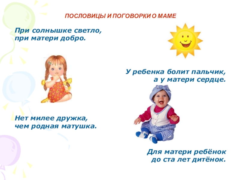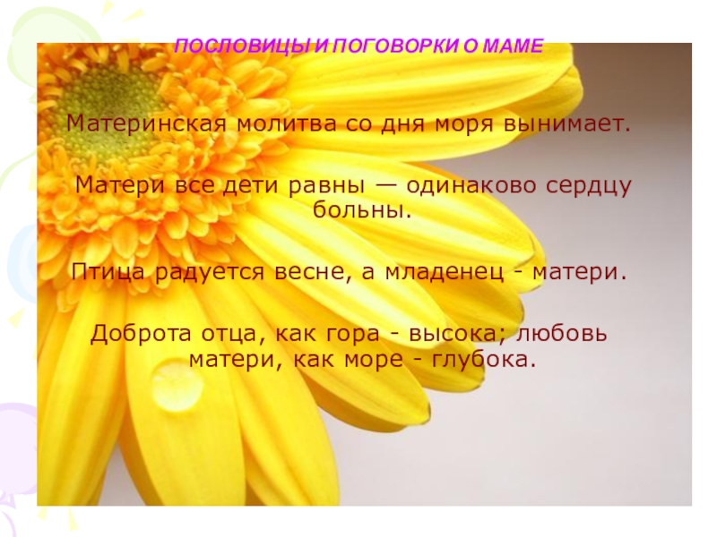 Слайд 8ПОСЛОВИЦЫ И ПОГОВОРКИ О МАМЕ