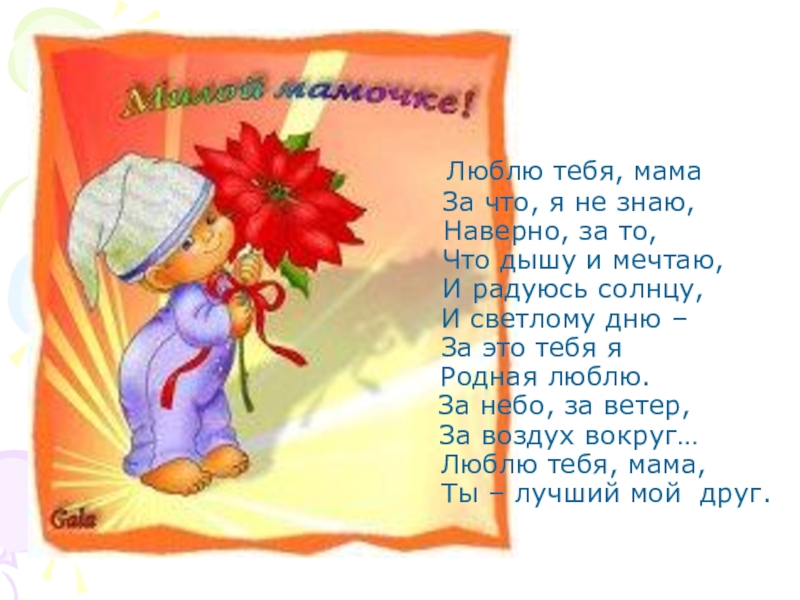 Слайд 17Кого зовут прекрасным словом "мама”.