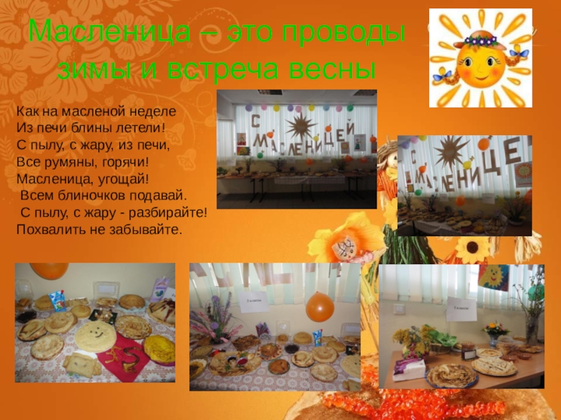 Масленица – это проводы зимы и встреча весныКак на масленой неделеИз печи блины летели!С пылу, с жару,