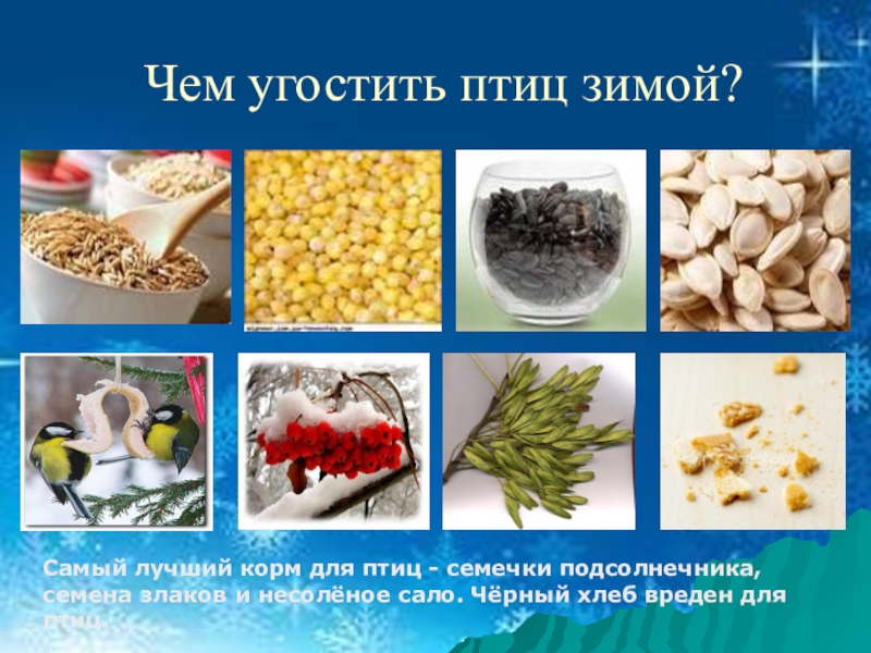 Слайд 29Чем угостить птиц зимой?