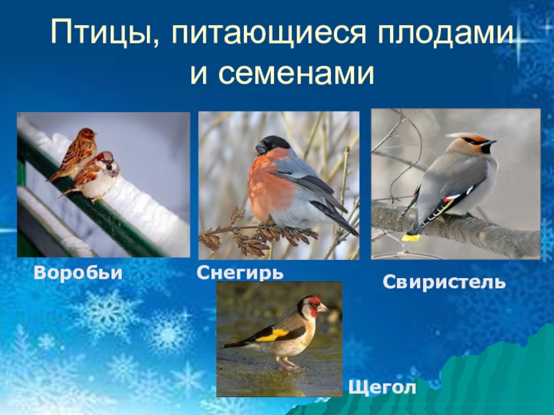 Слайд 18Птицы, питающиеся плодами и семенами