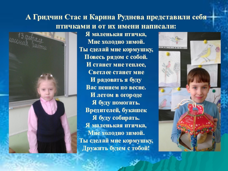 Слайд 12А Гридчин Стас и Карина Руднева представили себя птичками и от