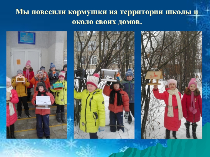 Слайд 13Мы повесили кормушки на территории школы и около своих домов.
