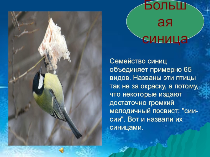 Слайд 22Семейство синиц объединяет примерно 65 видов. Названы эти птицы так не