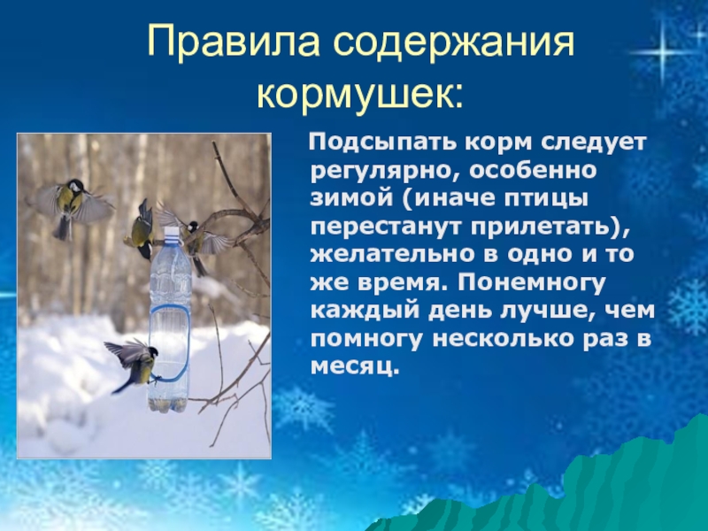Слайд 30Правила содержания кормушек: