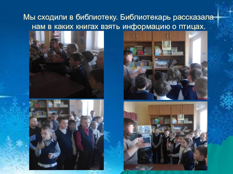 Слайд 7Мы сходили в библиотеку. Библиотекарь рассказала нам в каких книгах взять