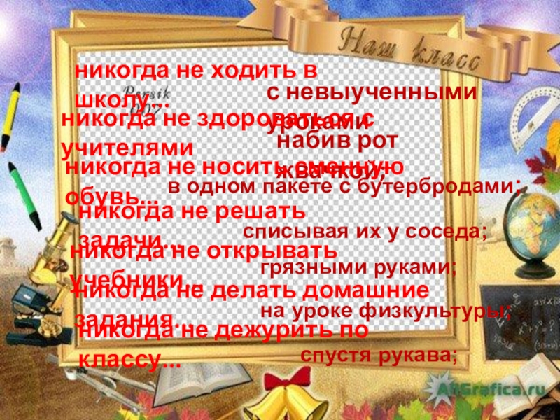 никогда не дежурить по классу...