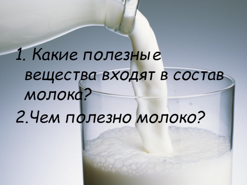 1. Какие полезные вещества входят в состав молока?2.Чем полезно молоко?