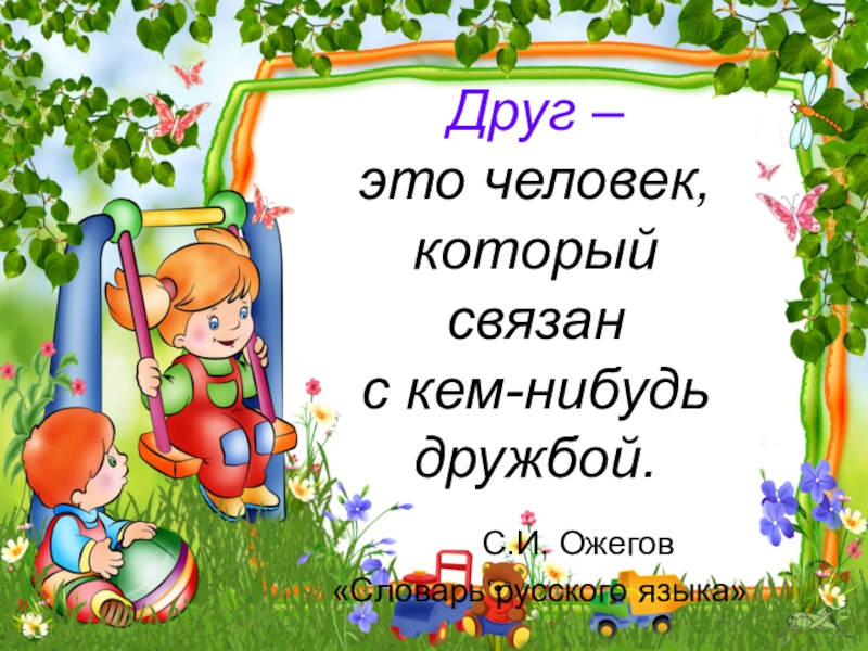 Друг –  это человек,  который связан  с кем-нибудь дружбой.  		С.И. Ожегов