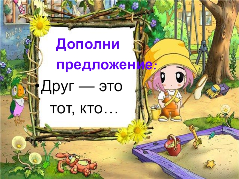Слайд 5 Друг – это человек, который связан с кем-нибудь дружбой. С.И. Ожегов