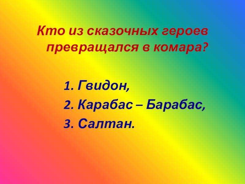 Слайд 22Кто из сказочных героев превращался в комара?