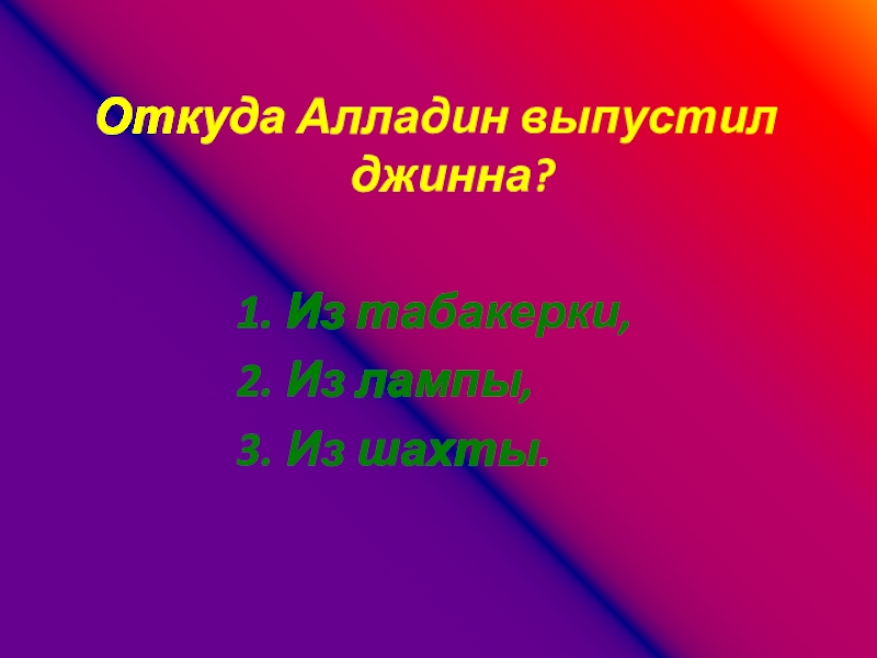 Слайд 18Откуда Алладин выпустил джинна?