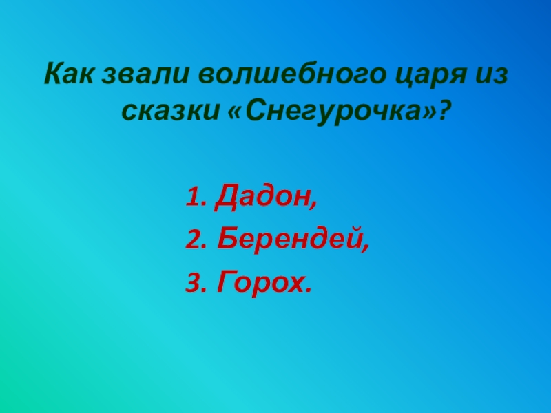 Слайд 12Как звали волшебного царя из сказки «Снегурочка»?