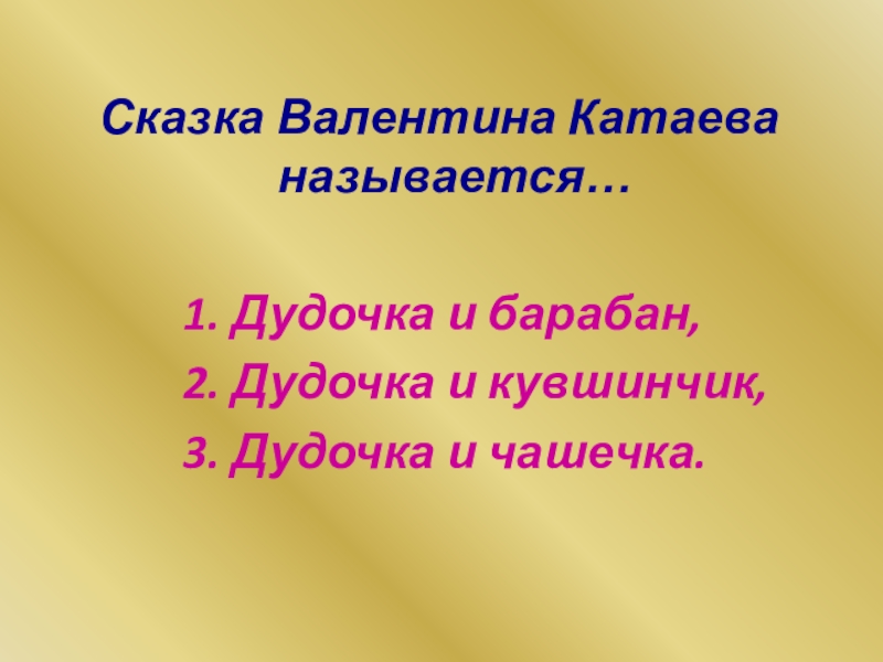 Слайд 7Сказка Валентина Катаева называется…