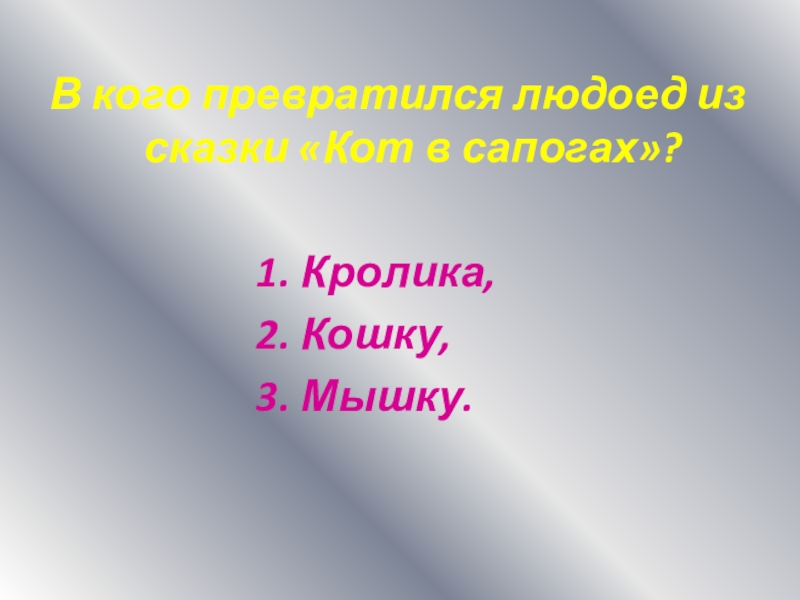 Слайд 16В кого превратился людоед из сказки «Кот в сапогах»?