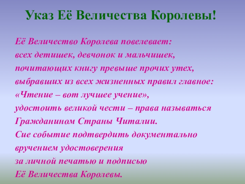 Слайд 31Указ Её Величества Королевы!