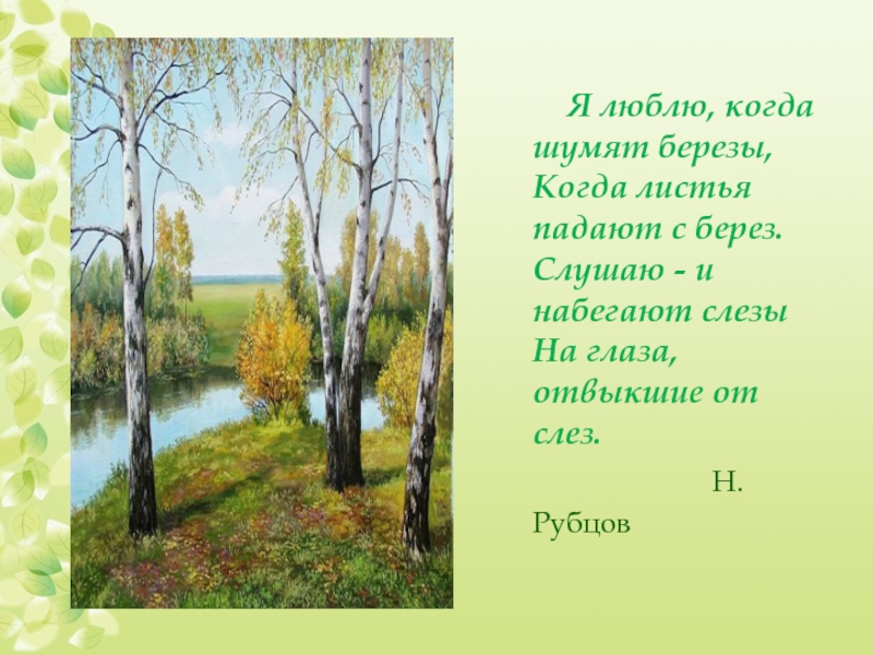 Слайд 19 Я люблю, когда шумят березы,