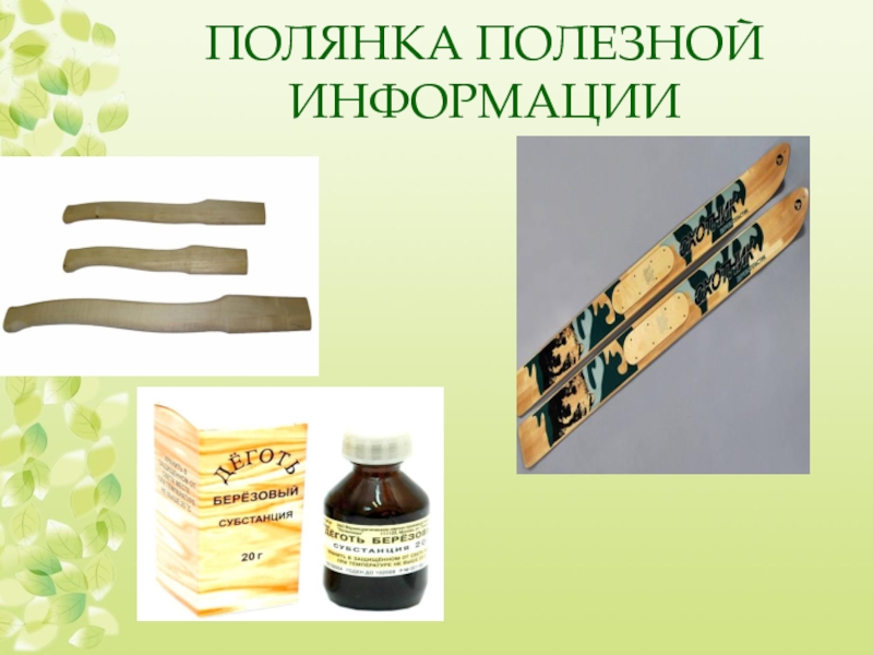 почек и листьев — как бактерицидное и ранозаживляющее средство, а масляную вытяжку из берёзовых почек — как дерматологическое средство. Берёзовые веники в России традиционно использовали в лечебных и профилактических целях в русской бане. Берёзовый дёготь—консервирующее и дезинфицирующее средство.
