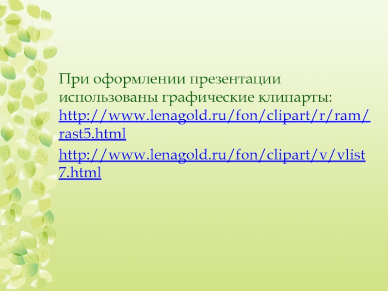 При оформлении презентации использованы графические клипарты: http://www.lenagold.ru/fon/clipart/r/ram/rast5.html