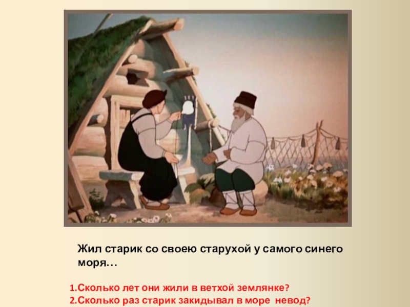 Жил старик со своею старухой у самого синего моря…Сколько лет они жили в ветхой землянке?Сколько раз старик