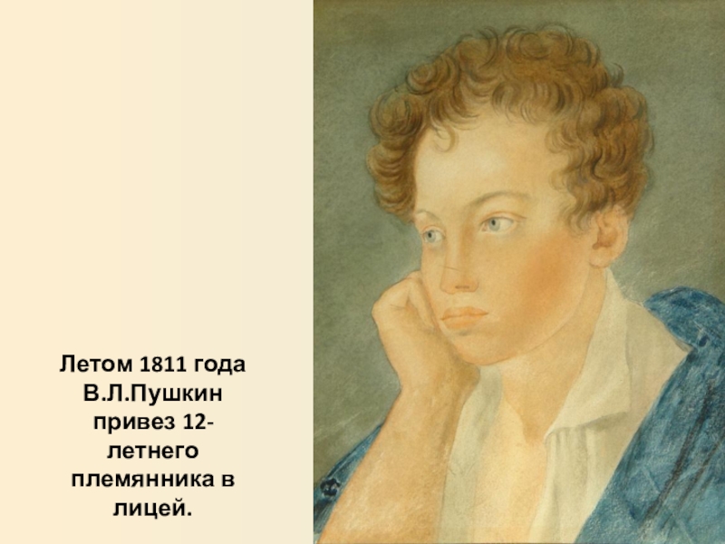 Слайд 11Летом 1811 года В.Л.Пушкин привез 12-летнего племянника в лицей.