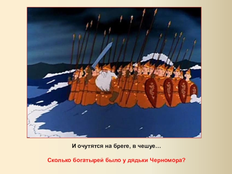 И очутятся на бреге, в чешуе…Сколько богатырей было у дядьки Черномора?