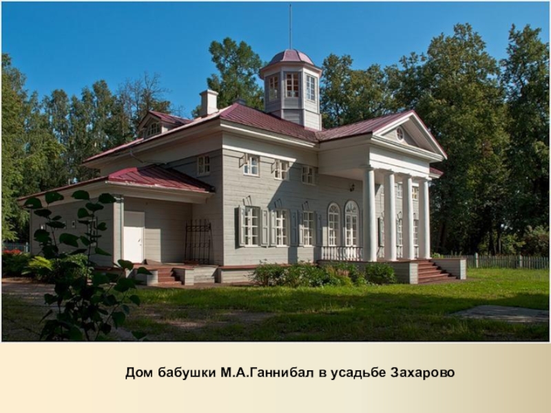 Слайд 8Дом бабушки М.А.Ганнибал в усадьбе Захарово