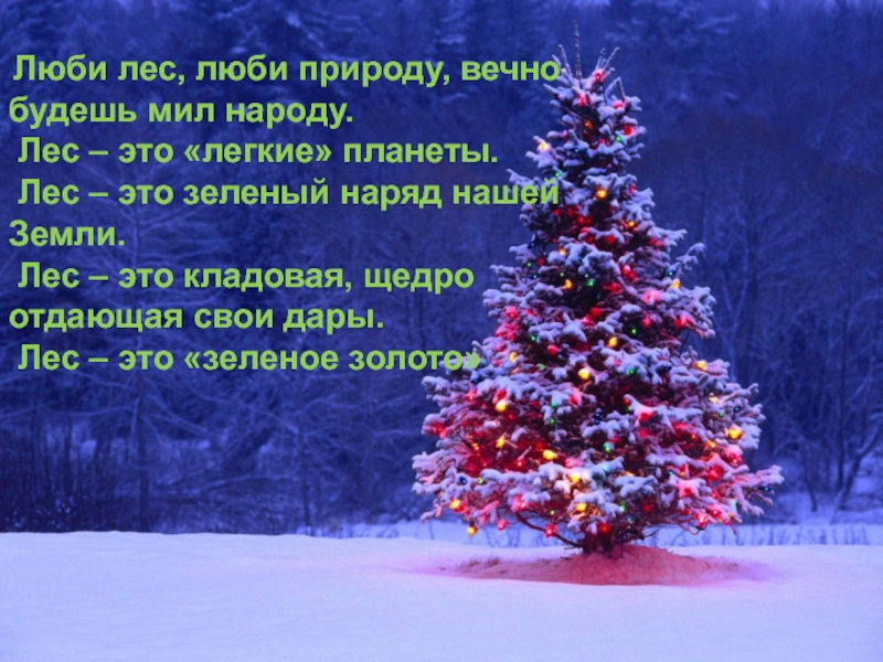 Люби лес, люби природу, вечно будешь мил народу. Лес – это «легкие» планеты. Лес – это
