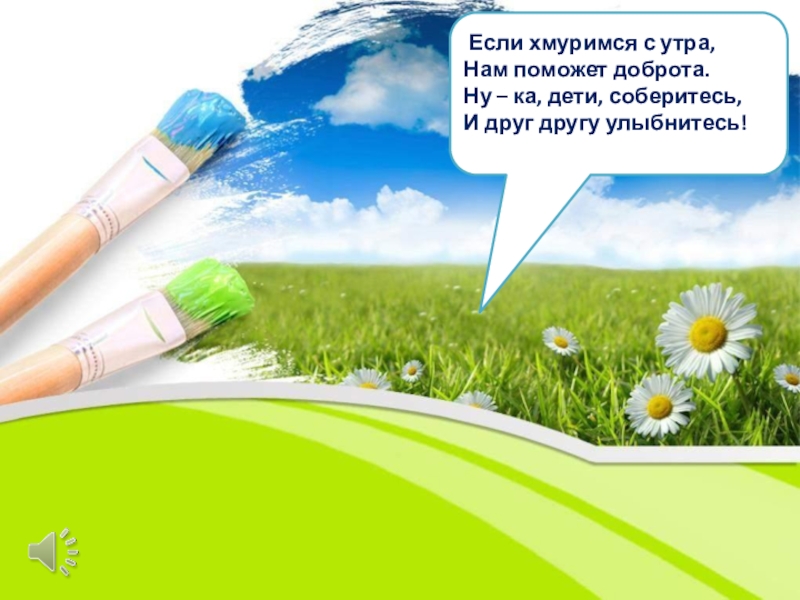 Если хмуримся с утра,Нам поможет доброта.Ну – ка, дети, соберитесь,И друг другу улыбнитесь!