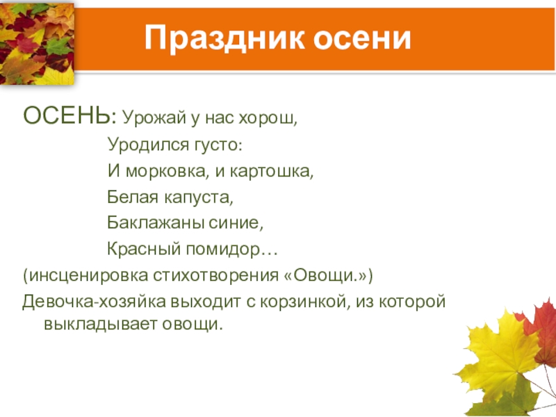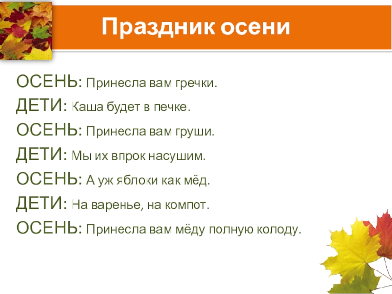 ОСЕНЬ: Принесла вам мёду полную колоду.