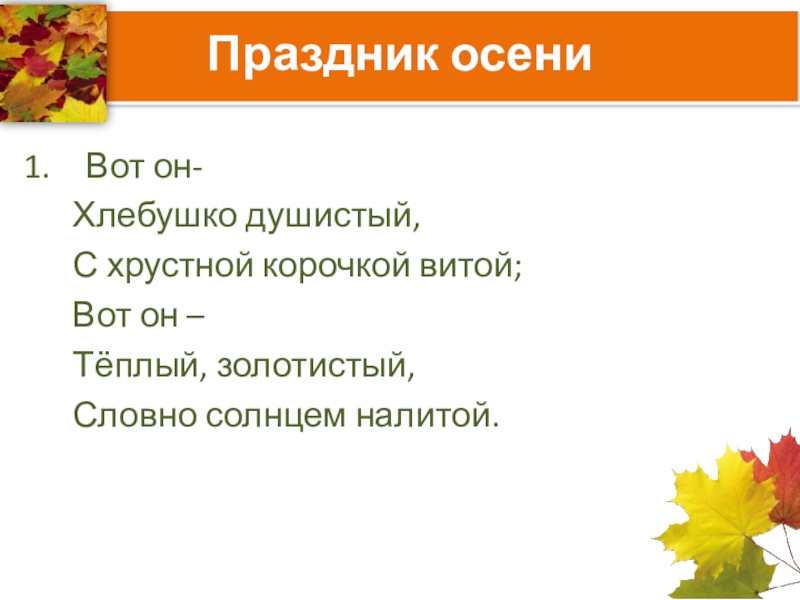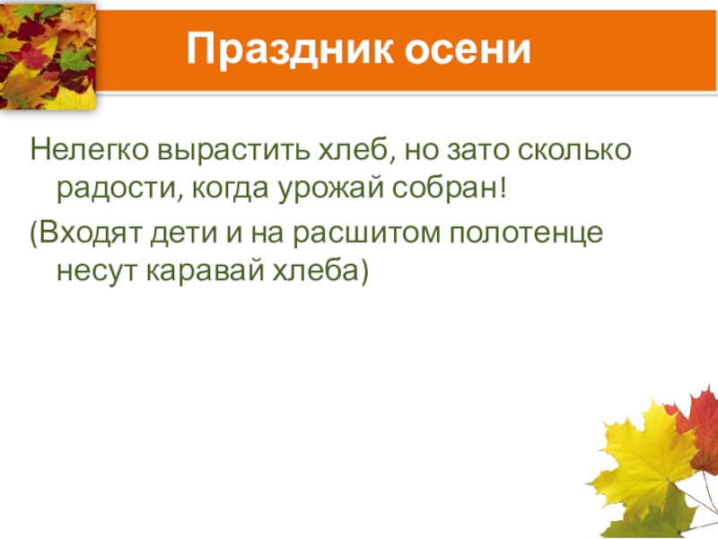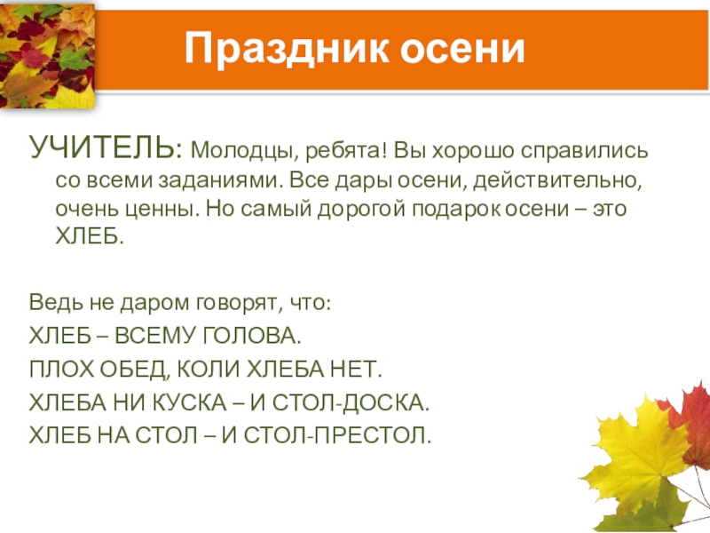 дары осени, действительно, очень ценны. Но самый дорогой подарок осени – это ХЛЕБ.